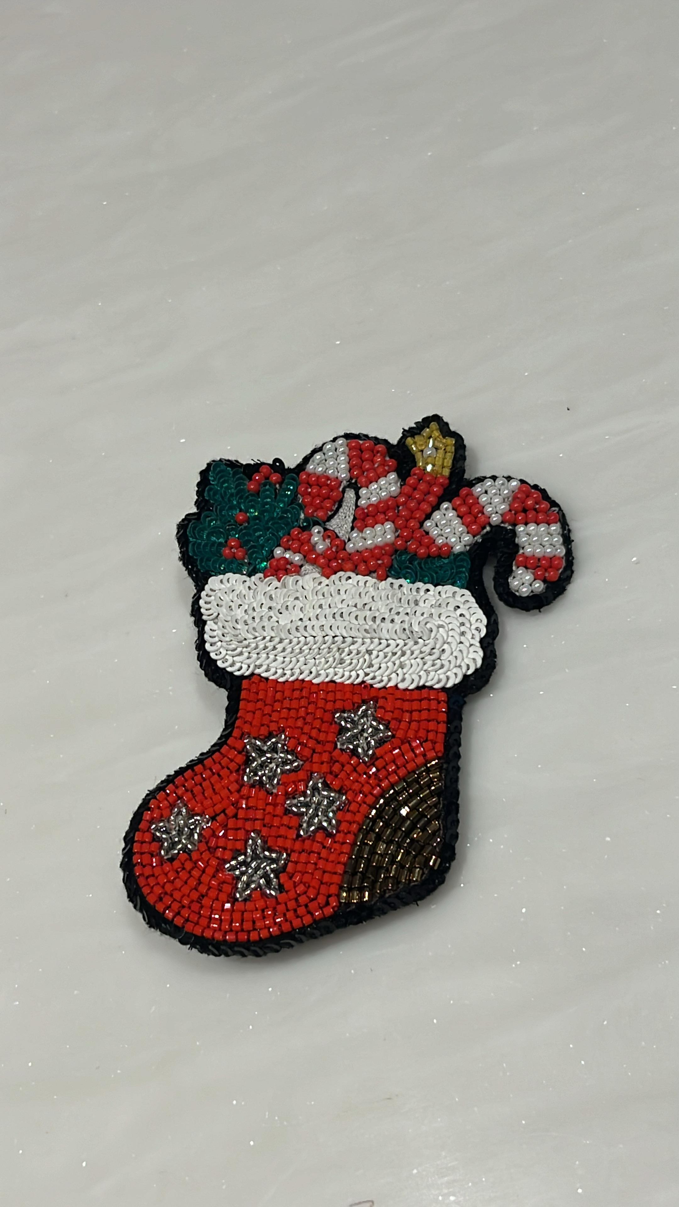 Sparkling Stocking Charm Brooch