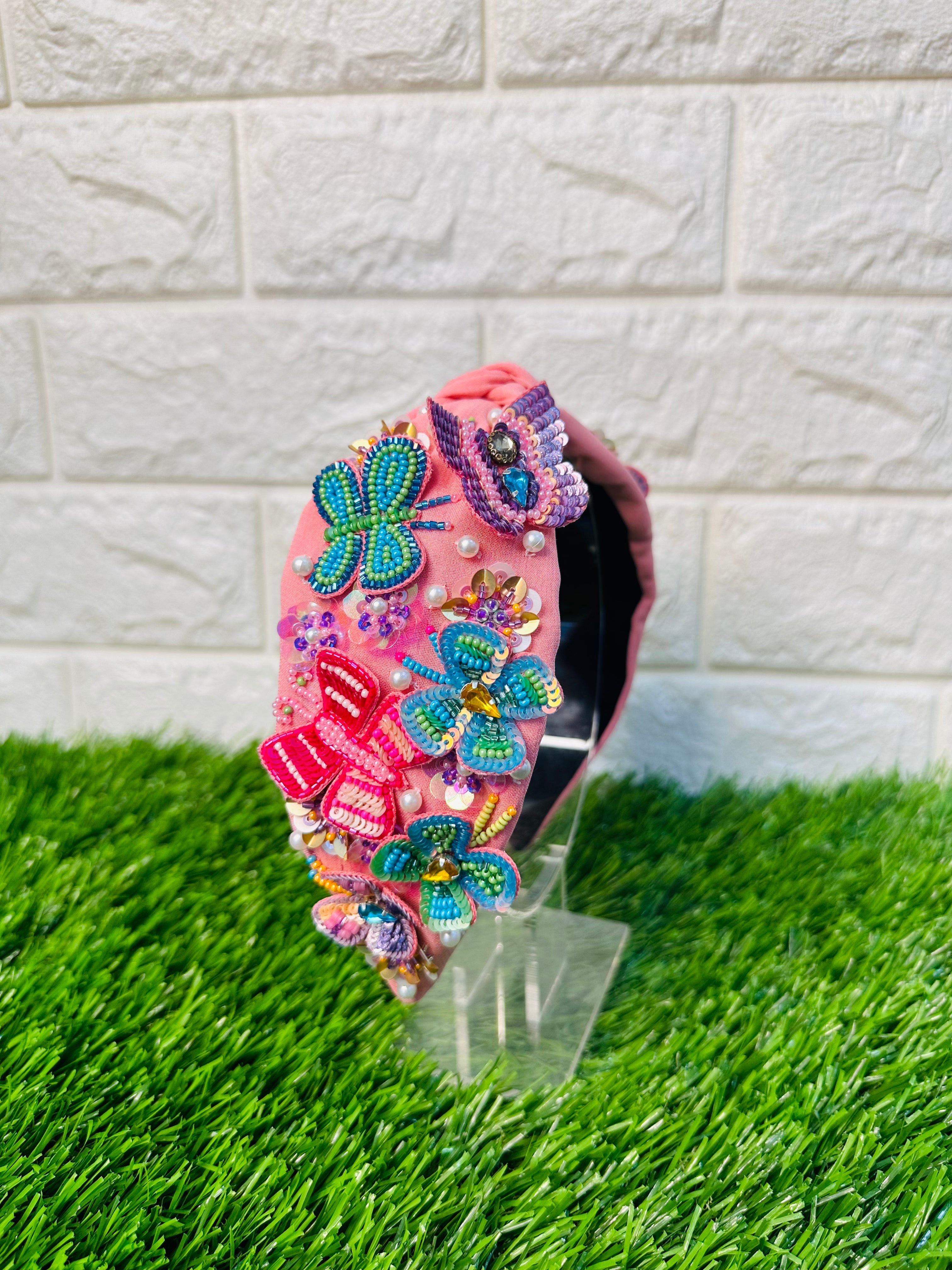 Butterfly Floral Barbie Pink Turban Hairband