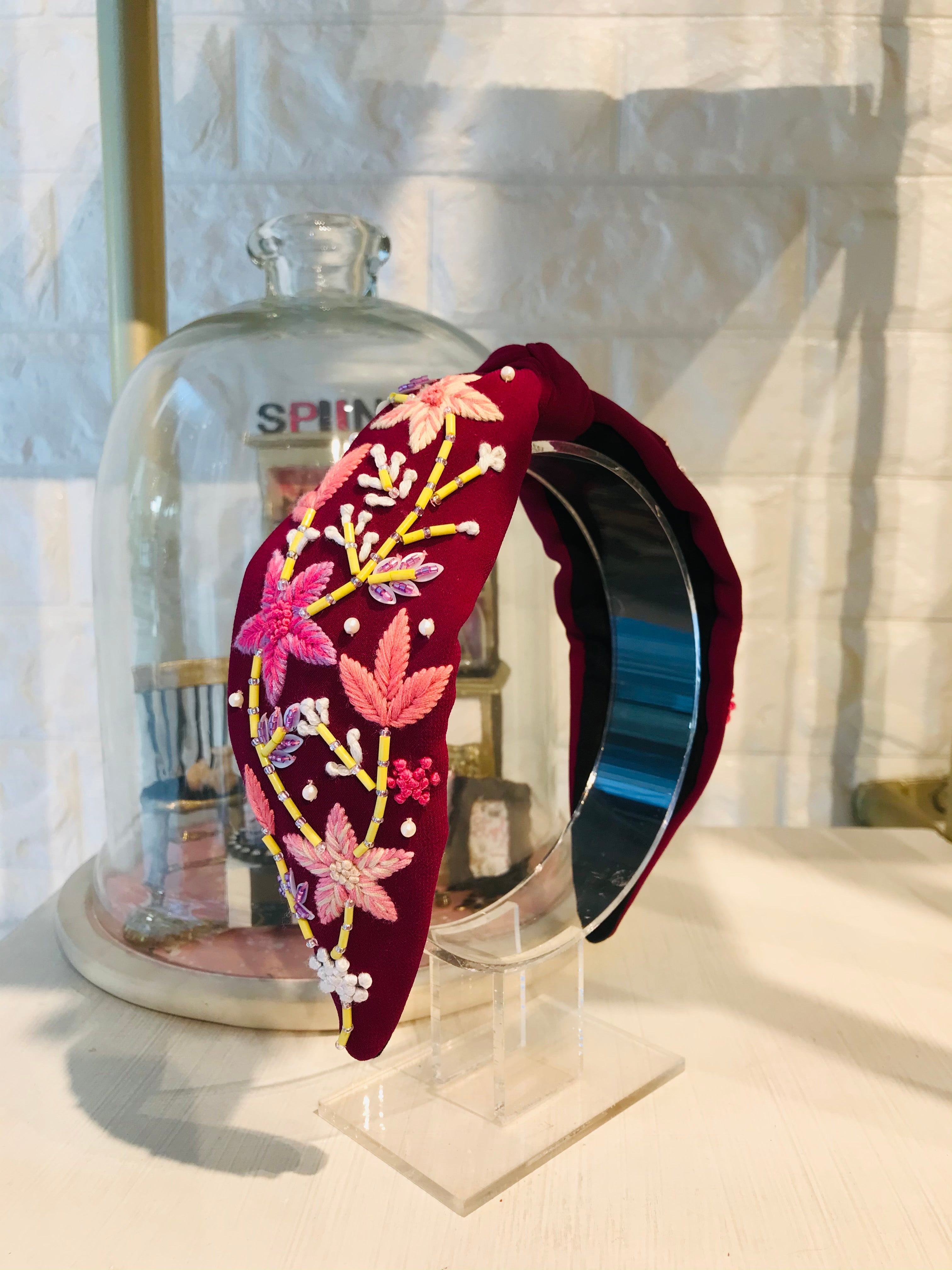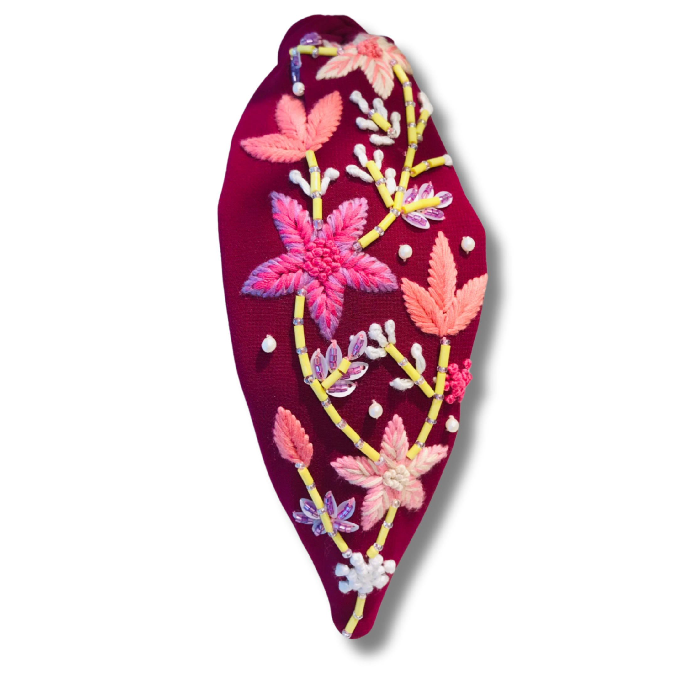 Floral Daisy Merlot Turban Hairband